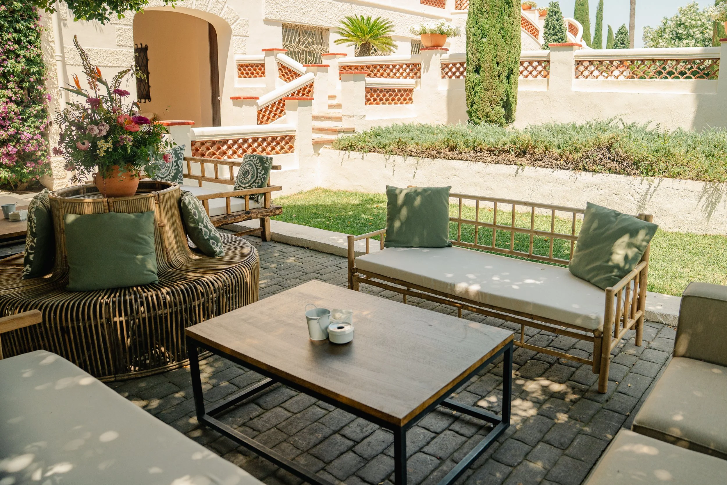 Nuestras terrazas y patios ofrecen el escenario perfecto para disfrutar del aire libre y la belleza de nuestros jardines. Son el lugar perfecto para cócteles, ceremonias civiles o cualquier otro evento al aire libre.